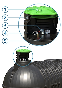 Высокая кольцевая жесткость позволяет производить монтаж топливной емкости на глубину до 4000 мм - 4м. Обслуживание осуществляется через колодцы обслуживания круглой формы закрывающиеся винтовой крышкой. Установка уровня жидкости и оборудования для подачи и забора топлива производится в дополнительной горловине, чтобы защитить от порчи и старения, дождя и влаги.