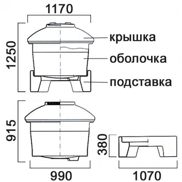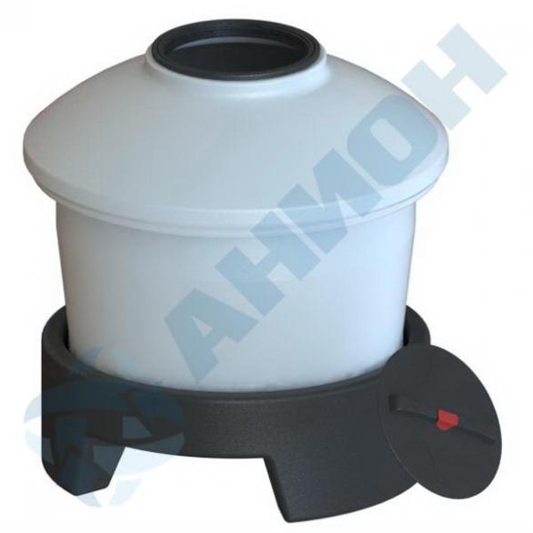Пластиковый бак 610 л поставляется в комплекте с пластмассовой подставкой. Пластиковый бак имеет сферическое днище с углублением для установки крана. Такая конструкция обеспечивает 100% опорожнение пластикового бака при сливе.