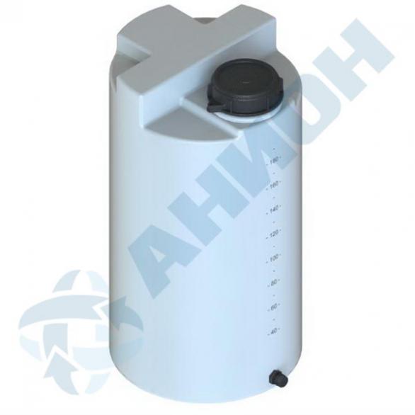 Пластиковый бак объемом 200 л служит для установки на нее дозирующего насоса, мешалки, датчика уровня, расходомера. Пластиковый бак 200 л снабжен градуировочной шкалой объема жидкости на цилиндрической поверхности. Пластиковый бак с горловиной и крышкой диаметром 150 мм имеет отверстие под отвод на 3/4".
