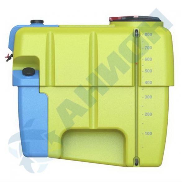 Емкость пластиковая предназначена для использования в тракторном опрыскивателе ОП 800. Комплектуется крышкой Д380 мм, уровнемером, промывочным баком 80 л. и баком для воды объемом 20 л (рукомойником). Бак для воды окрашен в массе в синий цвет. Емкость для опрыскивателя - в желтый. Под крышку возможна установка фильтра заливной горловины.