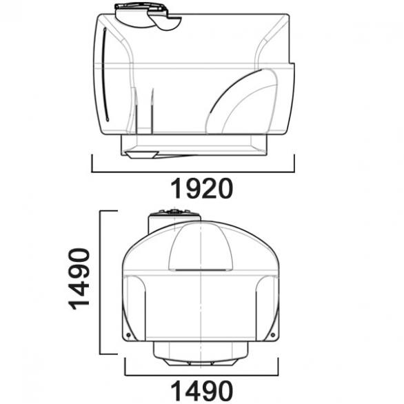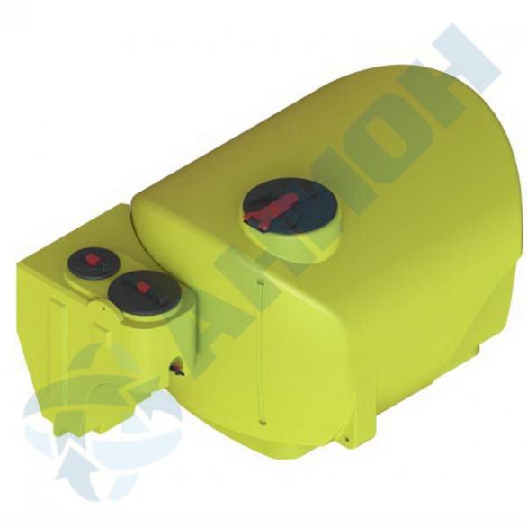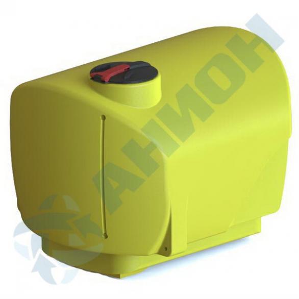 Емкость снабжена заливной горловиной с откидной крышкой D 380 мм с поплавковым дыхательным клапаном, имеет каплевидную горизонтальную форму с заужением и опорной площадкой по периметру снизу, с колесными нишами, с углублениями для установки уровнемера и с двумя боковыми приливами (лапами). Под крышку возможна установка фильтра заливной горловины.