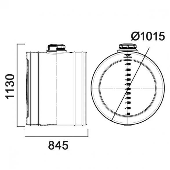 На боковой поверхности емкостей нанесены условные деления для контроля за уровнем жидкости. Емкости комплектуются крышками Д200 мм. Под крышку возможна установка фильтра заливной горловины.