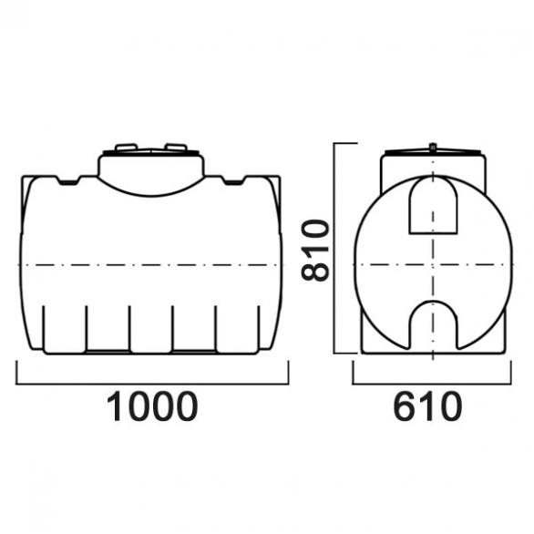 Емкость имеет устойчивую горизонтальную форму на трех опорах, оптимальную для эксплуатации в условиях ограниченной высоты. Подходит как для стационарного хранения, так и для установки на тихоходный транспорт с ограничением по скорости до 40 км/ч. В корпусе предусмотрены углубления для хомутов, при помощи которых бак крепится на транспортное средство. Широкая горловина позволяет обслуживать емкость внутри. В комплект входит крышка с дыхательным клапаном. Возможен монтаж крышки без клапана.