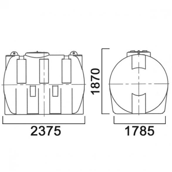 Емкость имеет устойчивую горизонтальную форму на трех опорах, оптимальную для эксплуатации в условиях ограниченной высоты. Подходит как для стационарного хранения, так и для установки на тихоходный транспорт с ограничением по скорости до 40 км/ч. В корпусе предусмотрены углубления для хомутов, при помощи которых бак крепится на транспортное средство. Широкая горловина позволяет обслуживать емкость внутри. В комплект входит крышка с дыхательным клапаном. Возможен монтаж крышки без клапана.