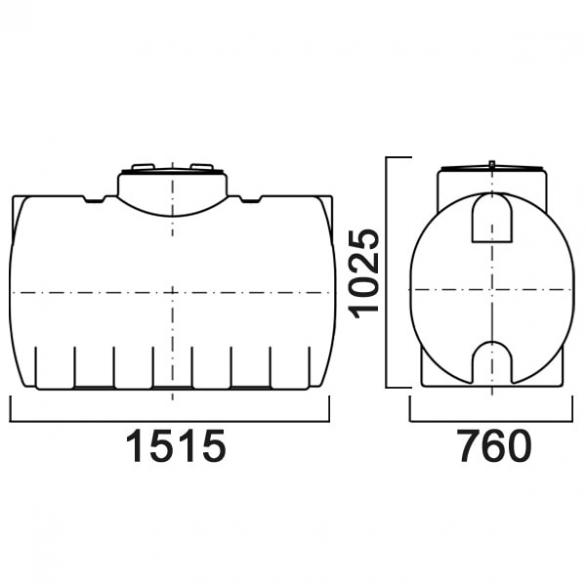 Емкость имеет устойчивую горизонтальную форму на четырех опорах, оптимальную для эксплуатации в условиях ограниченной высоты. Подходит как для стационарного хранения, так и для установки на тихоходный транспорт с ограничением по скорости до 40 км/ч. В корпусе предусмотрены углубления для хомутов, при помощи которых бак крепится на транспортное средство. Широкая горловина позволяет обслуживать емкость внутри. В комплект входит крышка с дыхательным клапаном. Возможен монтаж крышки без клапана.
