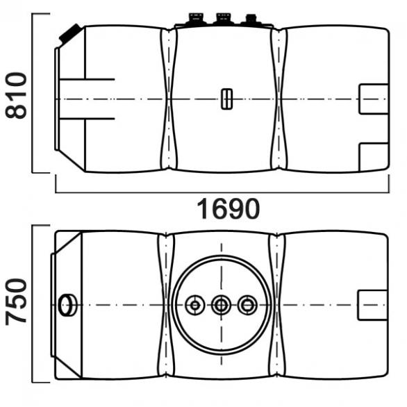 Емкость имеет эргономичную прямоугольную форму, горизонтальное исполнение и компактные размеры, позволяющие проносить бак в стандартный дверной проем. В верхней части емкости предусмотрены три штуцера для подсоединения фикс-пакета, который позволяет подключить бак к котлу в системе автономного отопления и к дизельгенератору в системе автономного электроснабжения.