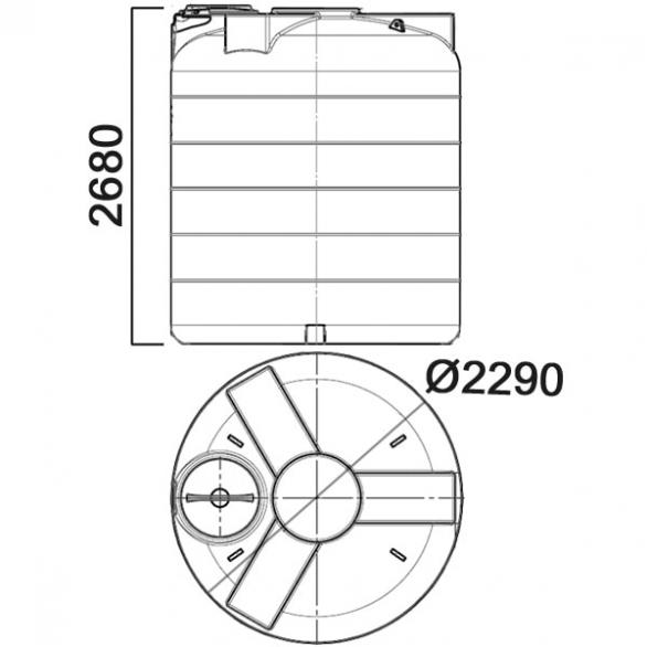 Емкость имеет вертикальную цилиндрическую форму. Отличительной особенностью емкости является горловина, расположенная сбоку верхней площадки, что упрощает заполнение и дальнейшее обслуживание емкости при эксплуатации. Ширина горловины D 540 мм позволяет обслуживать емкость внутри. В комплект входит крышка с дыхательным клапаном. Возможен монтаж крышки без дыхательного клапана.