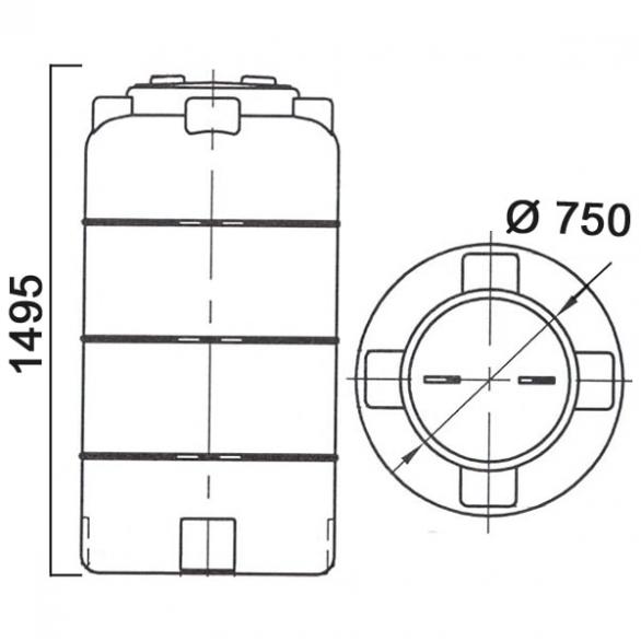 Емкость имеет вертикальную цилиндрическую форму, позволяющую хранить значительный объем жидкости на небольшом пространстве. Широкая горловина удобна для обслуживания емкости внутри.