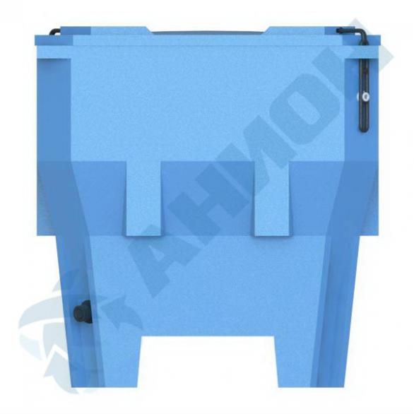Изотермический контейнер имеет выпуклое дно, обеспечивающее полный слив жидкости через два сливных отверстия диаметром М42.