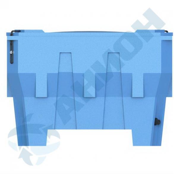 Высота ножек обеспечивает возможность обработки изотермических контейнеров гидравлической тележкой или погрузчиком. Пустые изотермические контейнеры вкладываются друг в друга. Стандартные цвета: синий и белый.