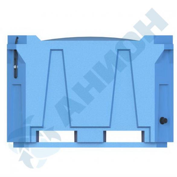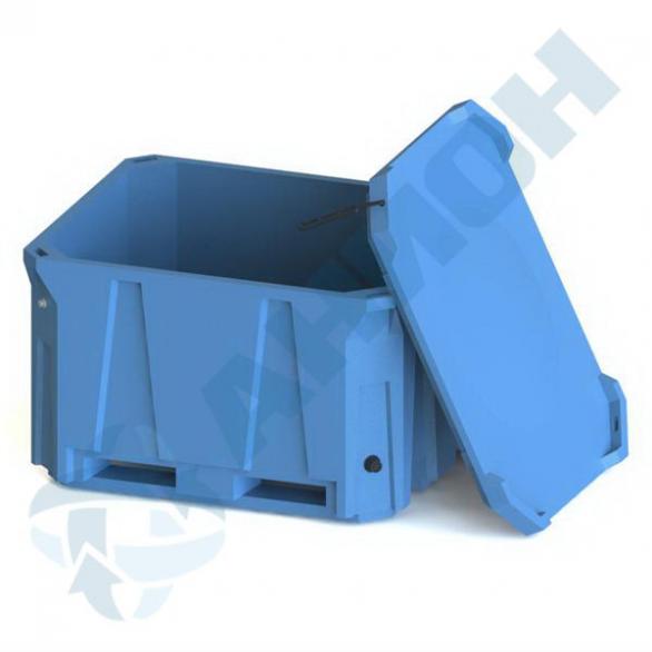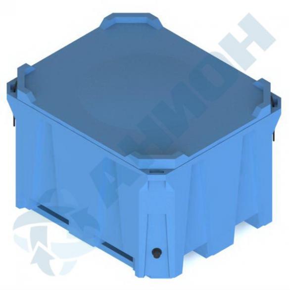 Контейнер изотермический 600 л может комплектоваться термоизолированной крышкой. Пластмассовая крышка крепится к изотермическому контейнеру двумя резиновыми запорами (рабберами). В комплект входит крышка, резиновые запоры и установочные детали.