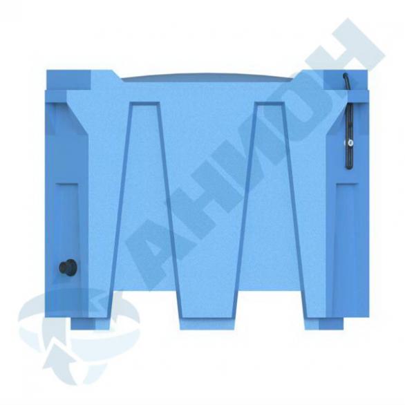 Изотермический контейнер (термоизолированный контейнер) выполнен с использованием технологии пенонаполнения (двойная стенка толщиной 2-4 мм заполнена пеной из полиэтилена толщиной до 40 мм). Это позволяет существенно увеличить прочность на изгиб и жесткость изделия, а также придать изотермическому контейнеру термоизоляционные свойства. Контейнер изотермический имеет выпуклое дно, обеспечивающее полный слив жидкости через два сливных отверстия диаметром М42.