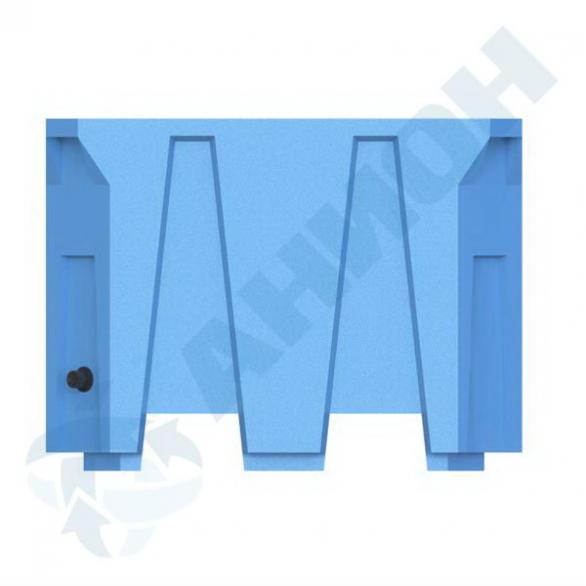 Изотермический контейнер (термоизолированный контейнер) выполнен с использованием технологии пенонаполнения (двойная стенка толщиной 2-4 мм заполнена пеной из полиэтилена толщиной до 40 мм). Это позволяет существенно увеличить прочность на изгиб и жесткость изделия, а также придать изотермическому контейнеру термоизоляционные свойства. Контейнер изотермический имеет выпуклое дно, обеспечивающее полный слив жидкости через два сливных отверстия диаметром М42.