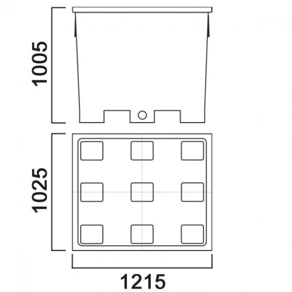 Пластмассовый контейнер имеет не плоское дно с углублениями в ножках, он не может комплектоваться крышкой. При транспортировке пустые контейнеры вкладываются друг в друга. Стандартный цвет - белый.