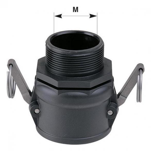 Гнездо для быстроразъёмного соединения изготовлено из стеклонаполненного полипропилена, кулачки из нержавеющей стали. Максимальное рабочее давление 9 атм.