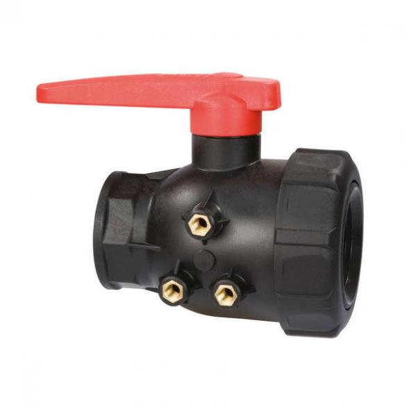 Корпус крана изготовлен из стеклонаполненного полипропилена, шар и полусферы - из фторированных материалов.