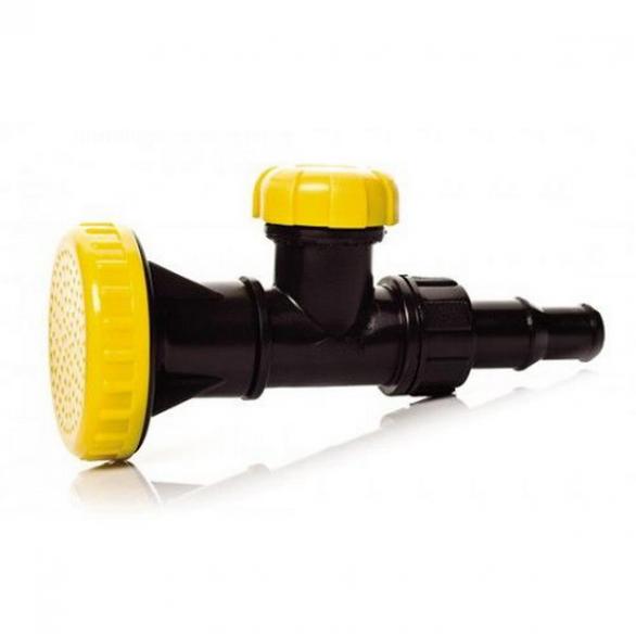Лейка снабжена пластмассовым краном. Подсоединение лейки к емкости для воды возможно через шланг с внутренним диаметром 19 мм или через резьбовое соединение 3/4".