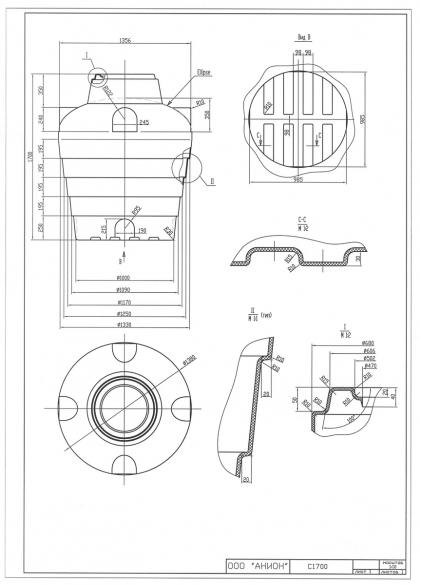 Длина: 1356 мм. Ширина: 1380 мм. Высота: 1700 мм. Ø люка: 610 мм.