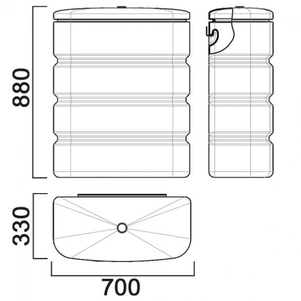 Емкость дополнительно оборудована крепежным кронштейном. Обе модификации комплектуются крышкой. Под заказ на емкости устанавливается заливная и сливная арматура. Стандартные цвета бака – синий и «гранит» (модели с литерой «гр»). При желании емкость может быть выполнена в любой цветовой гамме.